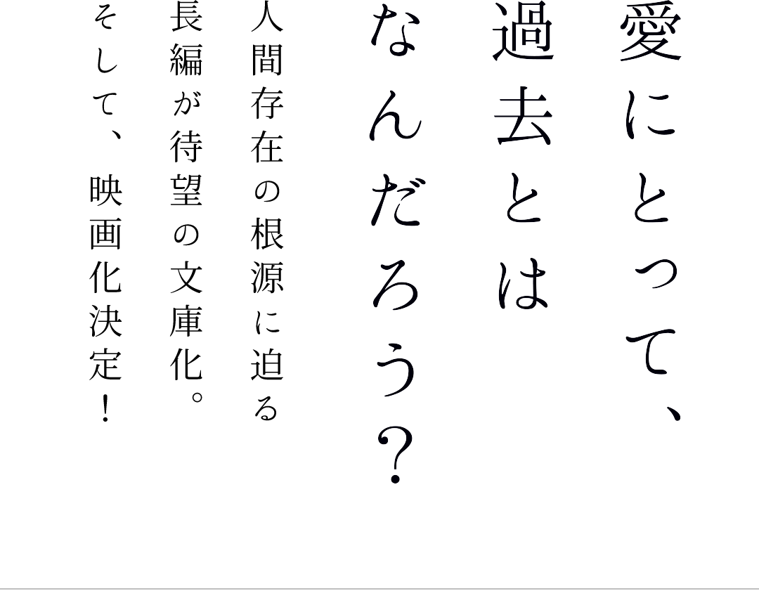 愛にとって過去とは何なのか、という主題はもちろんの事、平野さんご自身がずっと向き合ってこられた「私」とは何か、という事についても考えさせられました。