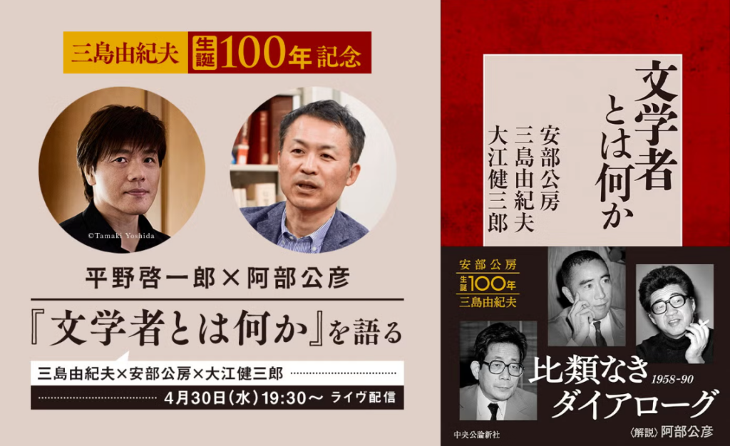 日本文学界の3大レジェンド作家、三島由紀夫、大江健三郎、安部公房による豪華鼎談を収めた『文学者とは何か』。平野啓一郎と阿部公彦が偉大な作家の語り合いを読み直しながら、各人の際立つキャラクターや創作法について解説し、意見を交わし合います。